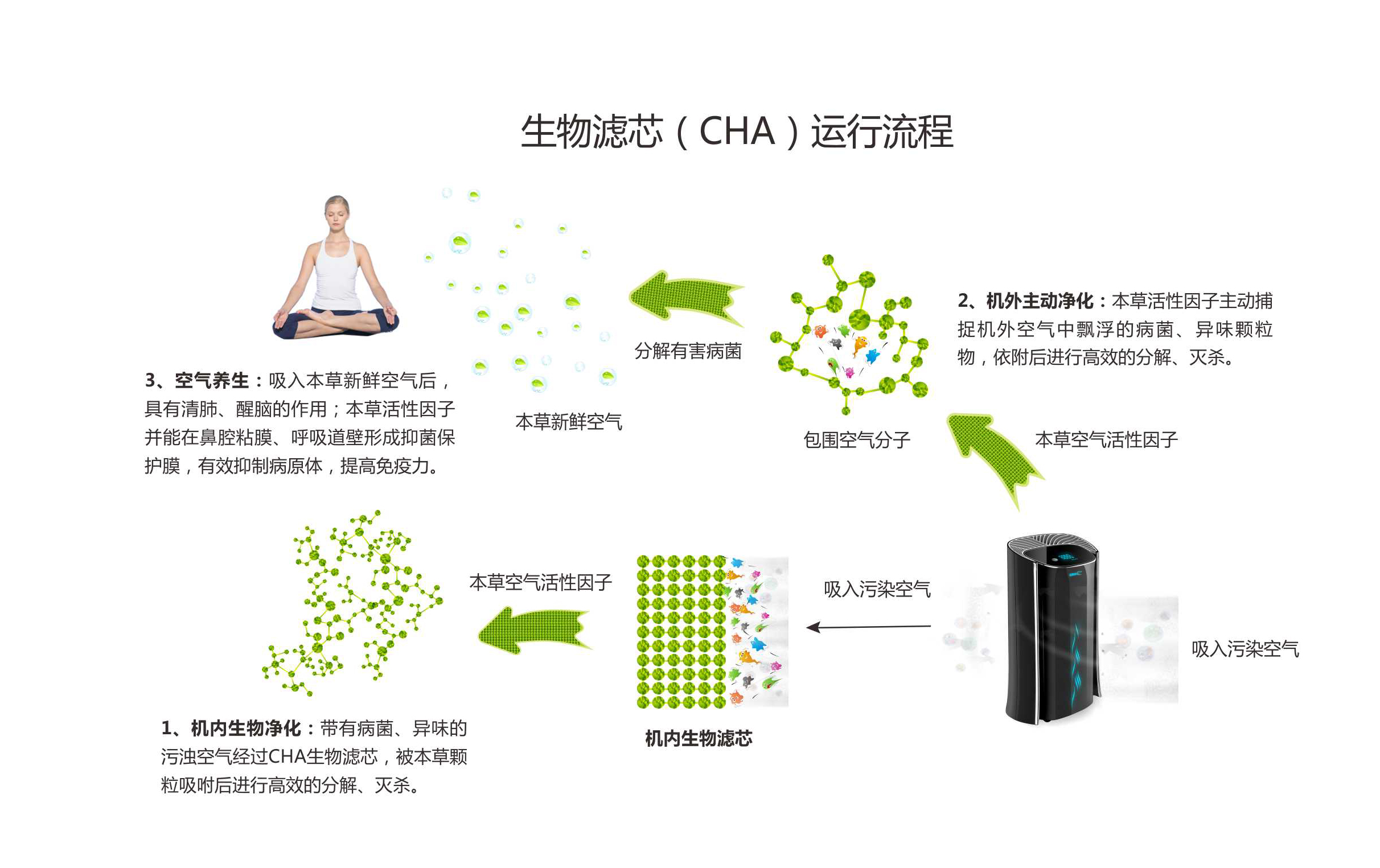 據(jù)彭康教授介紹,CHA本草凈化技術(shù)具有三大先進(jìn)功效:一、生物凈化更高效:傳統(tǒng)空氣凈化是被動(dòng)式吸附凈化,有害微生物被吸附在HEPA等物理濾網(wǎng)上,相當(dāng)于“垃圾筒”式的收集,沒有被殺死。本草空氣凈化具有生物殺菌消毒功能,空氣中有害微生物進(jìn)入CHA生物濾芯,不僅被過濾,而且被本草活性成份殺死。二、主動(dòng)式凈化更徹底:傳統(tǒng)空氣凈化器凈化工作全部在機(jī)內(nèi),是被動(dòng)的,而本草空氣凈化過濾出來的空氣,因含有中草藥活性揮發(fā)成份,在空中還可主動(dòng)消毒,凈化更加徹底。三、空氣養(yǎng)生更健康:本草空氣凈化散發(fā)出來的空氣含有天然植物營養(yǎng)成分的活性空氣因子,接觸皮膚,進(jìn)入鼻粘膜、呼吸道、肺部,在局部形成屏障可阻滯有害物質(zhì)的吸入,并有利于人體健康。